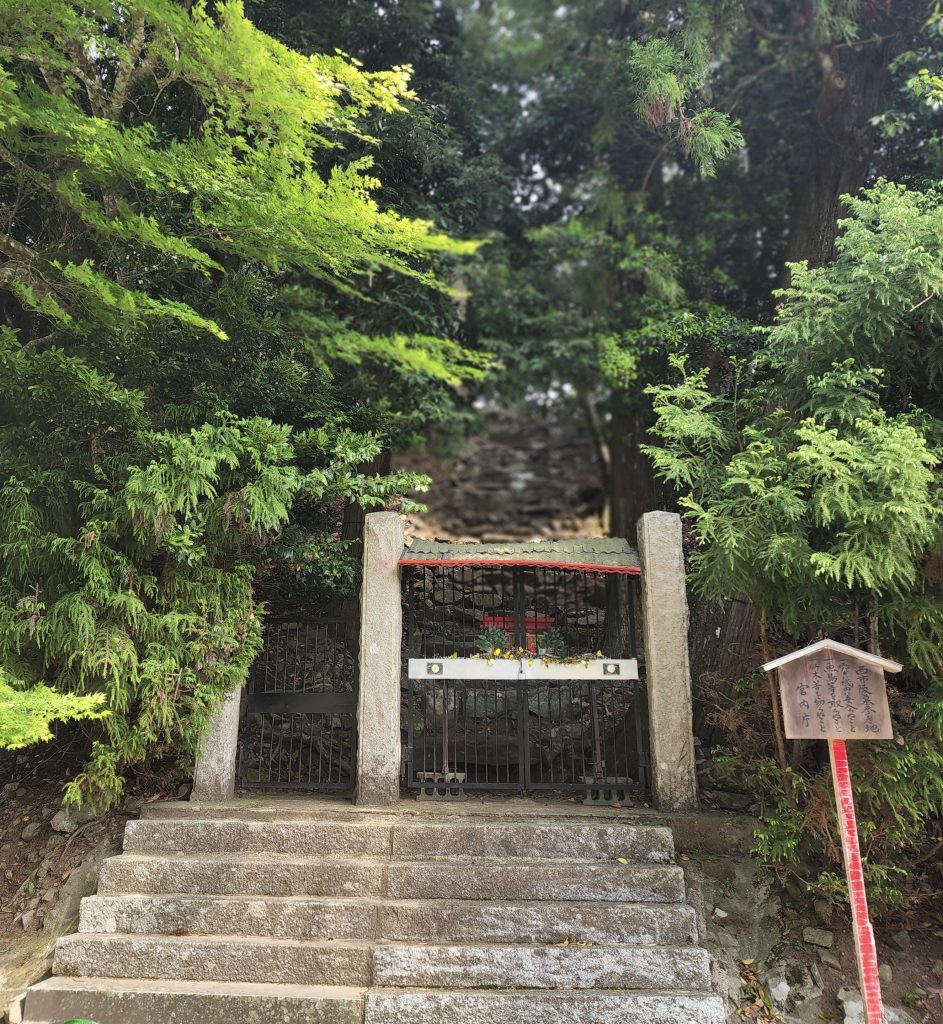 ここは壇ノ浦の戦いで入水した安徳天皇の遺骸が地元の漁師の網にかかりこの地まで運ばれて埋葬されているということで、宮内庁が管理しており墓の入り口には鉄の扉で立ち入り禁止になっています。