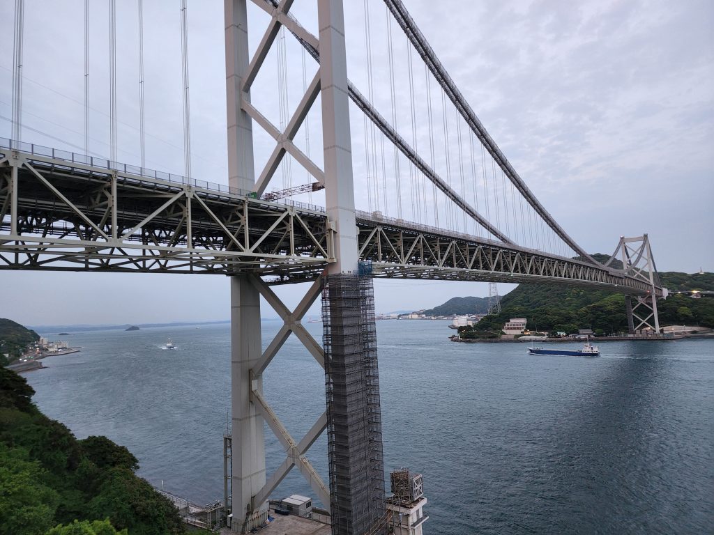 (写真は関門海峡を望む関門橋、左に壇ノ浦の古戦場、手前が下関、対岸が門司)